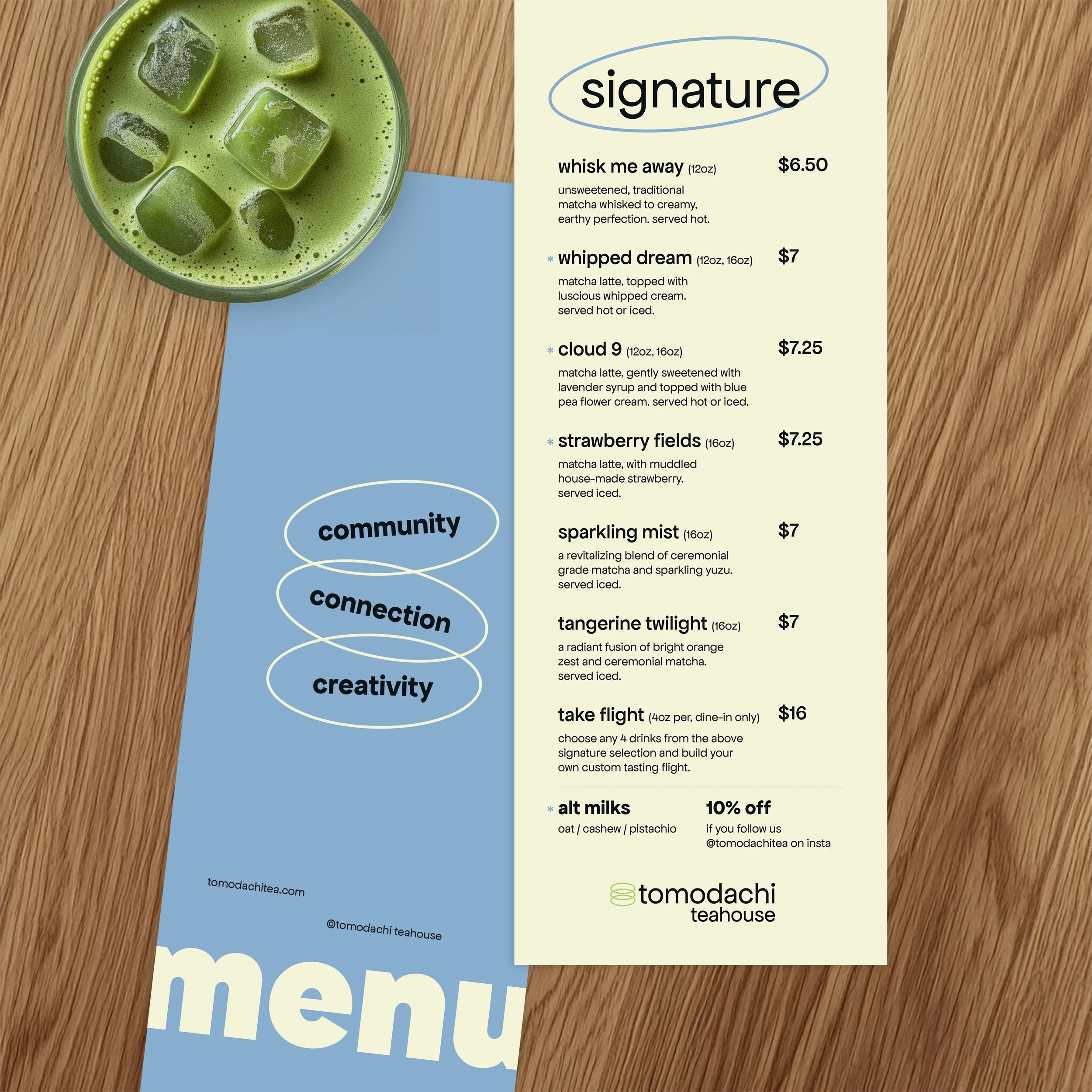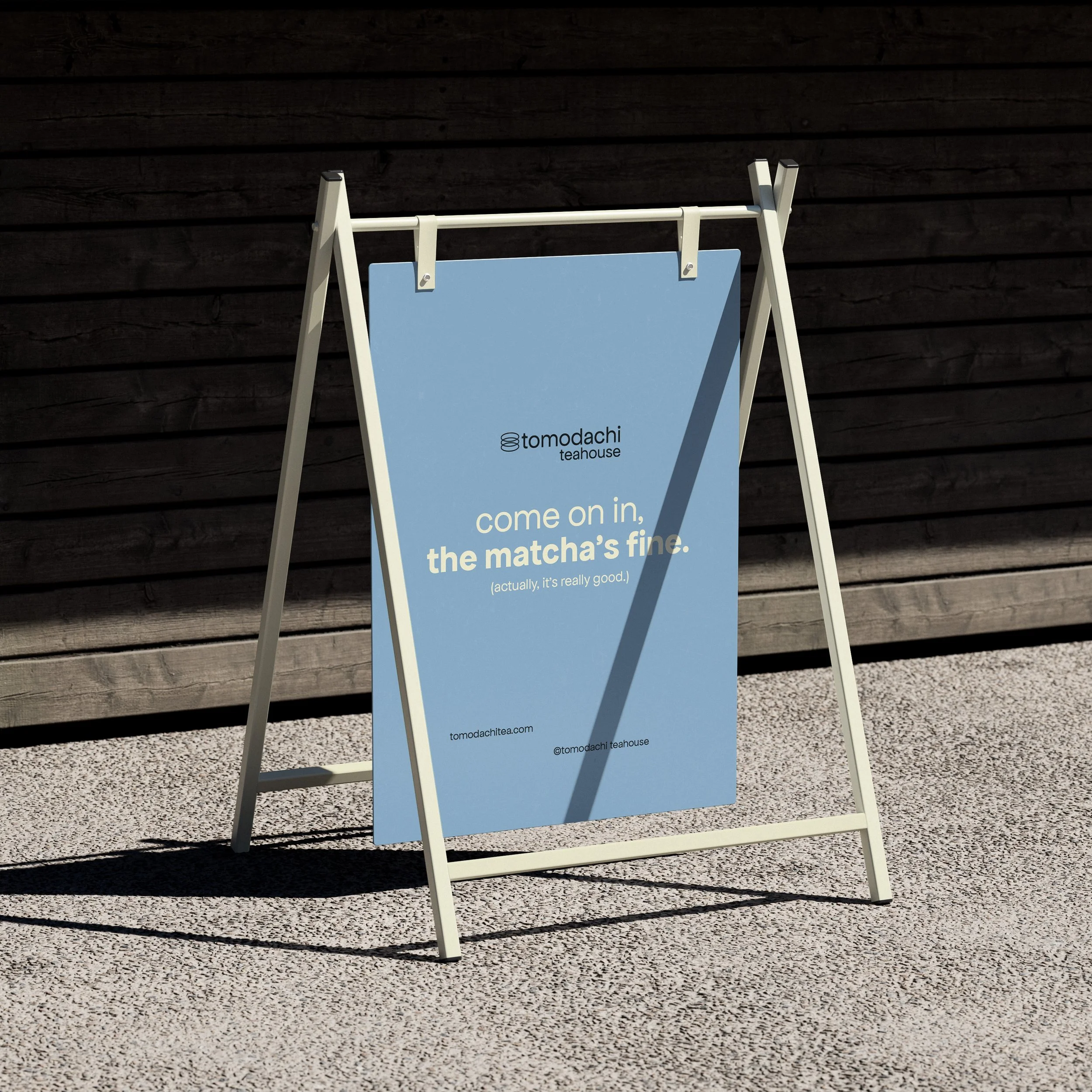 A creative exercise with staying power. I teamed up with a copywriter to concept Tomodachi Teahouse from scratch: a matcha-forward community space inspired by the Japanese word for "friends." I handled all the creative execution, from logo and identity system to packaging, merch, menus, posters, and social. The kind of side project that reminds you why you got into this in the first place.